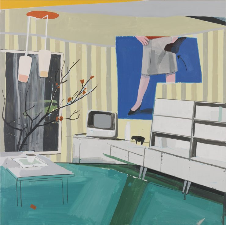 Thierry Grootaers, der 1998 aus der l’Aca de Liège hervorging, besuchte die Malkurse von Freddy Beunckens und die Zeichenkurse von Jean Pierre Rensonnet. Sein bevorzugtes Jagdgebiet ist sein Alltag, in dem er seine Poetik am besten dekliniert. Als guter Chronist der Oberfläche zieht er sich das Gewand eines Anthropologen an, um besser darin zu verweilen, unsere täglichen Sitten und Gebräuche zu entschlüsseln, nicht ohne Humor. In seiner Arbeit funktioniert das Spiel mit den Beziehungen sowohl auf der Ebene der Menschen als auch auf der Ebene der Objekte. Von der Fernbedienung über das Auto bis hin zu Möbeln gibt es keine besondere Hierarchie bei den Zeichen. Die Gesichter und Silhouetten der Figuren, die aus alten Zeitschriften übernommen wurden, werden in seiner Farbpalette genauso behandelt wie die vertrauten Gegenstände, die sie umgeben. Große Farbfelder, die erst durch eine bestimmte Stimmung oder Körperhaltung zum Leben erweckt werden. Das Ganze erinnert an ein Farbmosaik, das uns direkt in das Herz einer Realität eintauchen lässt.