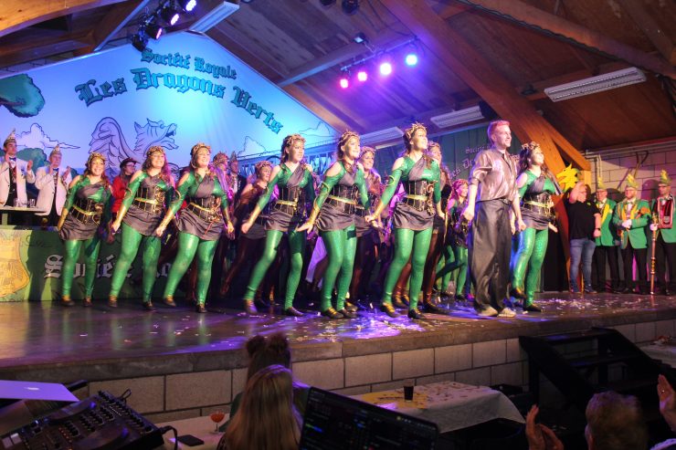 Auf einer Kostümsitzung dürfen Büttenreden traditionell nicht fehlen. Maurice Renier alias „D’r Flockebüll“ von der KG Lustige Brüder trat als Neuling auf und war zum zweiten Mal bei den Dragonern zu Gast. Mario François alias „D’r Kohlebur“ von der KKG Ulk ist seit 29 Jahren regelmäßig Teil der Dragoner-Sitzung. Mit ihren Pointen trugen beide dazu bei, die Lachmuskeln des Publikums anzusprechen. Für humorvolle Einlagen sorgten mehrere Formationen: Das Männerballett trat mit einer Darbietung zum Thema American Football auf, während das Damenballett eine Persiflage auf den stressigen Tagesablauf einer Frau bzw. Mutter präsentierte. Zum letzten Mal zeigte auch die Formation Tatas 2.0 ihre Beiträge. Ein Höhepunkt jeder Sitzung sind zudem die Showtänze. Der Kindershowtanz orientierte sich dabei thematisch an der Serie „Wednesday“ während die große Tanzgruppe mit ihrer Darbietung zu „Medusa“ in die griechische Mythologie entführte. Nach dem Programm wurde noch lange weitergefeiert. Für viele Besucher gehört gerade diese kameradschaftliche Atmosphäre ganz nach dem Vereinsmotto: „Kamerote sönd än dat blieve vär“ fest zum Sitzungserlebnis dazu.