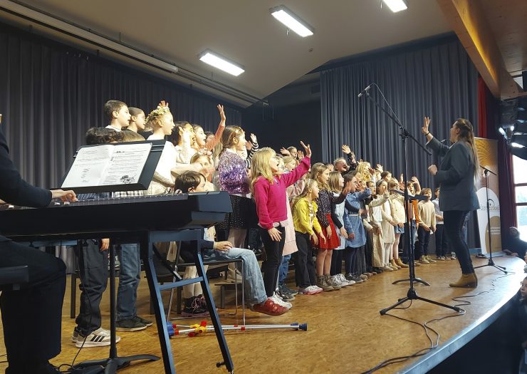 Die jüngsten Sänger sorgen mit humorvollen Liedern wie „Das Rap Huhn“ und „Die coole Bongo Disco“ für beschwingte und heitere Akzente. Die älteren Schülerinnen und Schüler interpretieren mehrstimmige Werke, darunter „Das ist Swing“ und „Samba lélé“.