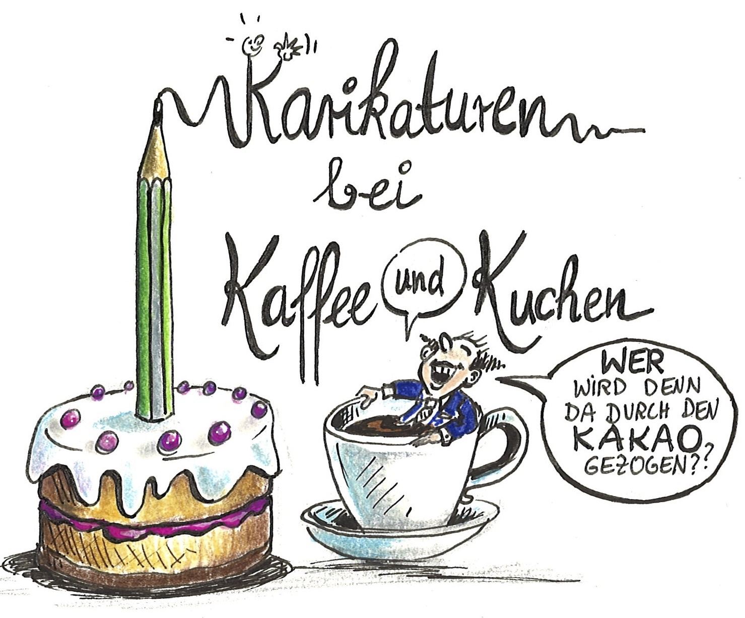 Karikaturen bei Kaffee und Kuchen